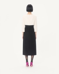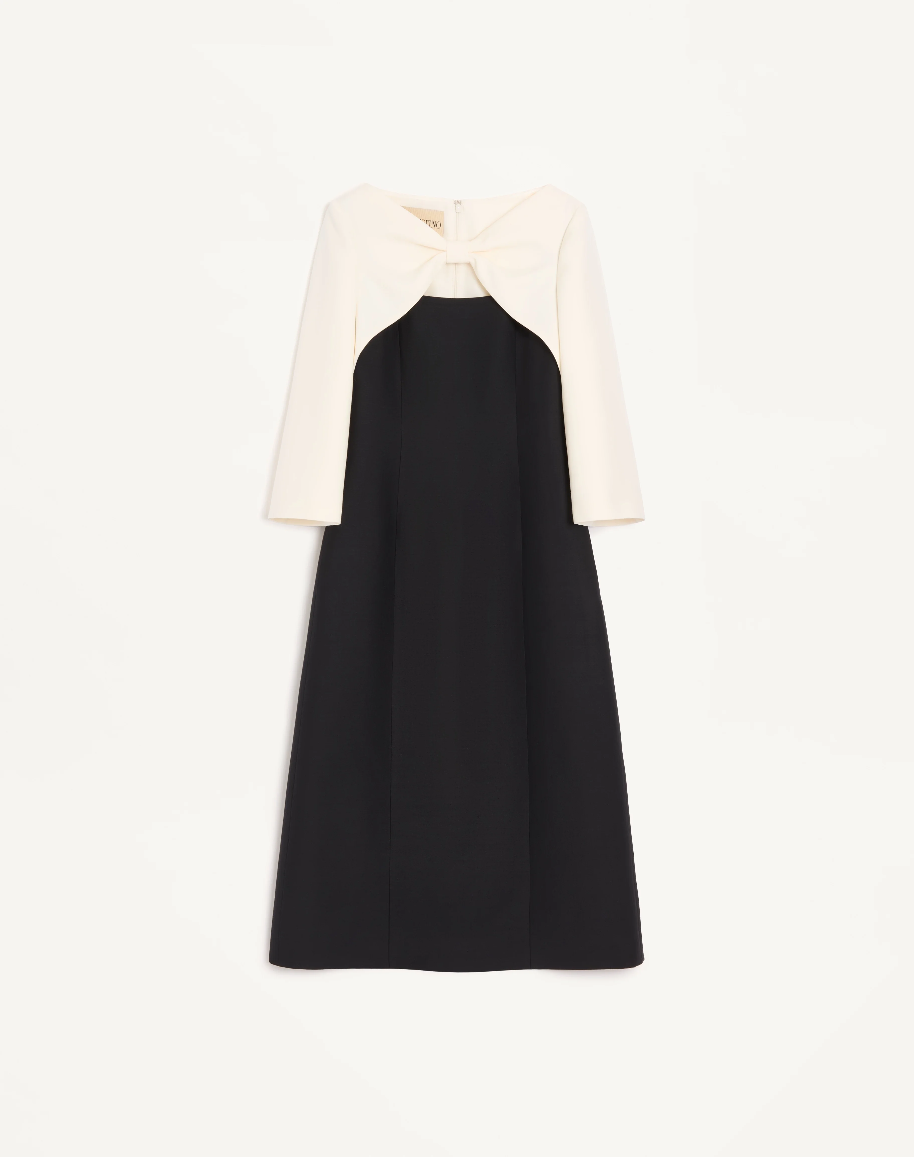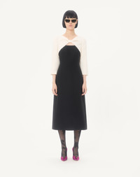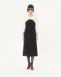 Midi dress in Crepe Couture with bow and contrasting sleeves - Concealed rear zipper and hook-and-eye fastening - Crepe Couture (65% Virgin Wool, 35% Silk) - Habotai lining (100% Silk) - Length: 120 cm / 47.2 in. from the shoulders in an Italian size 40 - The model is 176 cm / 5'9" tall and wears an Italian size 40 - Made in Italy The look of the model is completed by Valentino Garavani Shoes. Product code: 8B3VAJR01CF_0NA