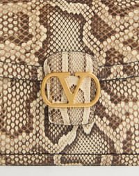 Valentino Garavani 9TO5 python shoulder bag with VLogo Signature closure. The bag can be carried on the shoulder/crossbody thanks to the adjustable leather shoulder strap. - Antique brass-finish hardware - Magnetic closure with logo - Nappa leather lining. Interior: three compartments, slip pocket with button - Shoulder strap drop length: 33 cm / 13 in. at the center hole - This model has an additional section of the shoulder strap that can be attached to the bag by buckles - Shoulder strap drop length with additional section: 48 cm / 18.9 in. at the central hole - Dimensions: W24.5xH18.5xD8 cm / W9.6xH7.3xD3.1 in. - Made in Italy This product contains magnets. Please consider if this product will be worn within 15 cm from any implanted device. Any concerns please contact your healthcare professional. Product code: 6W2B0R15QCJ_R5C