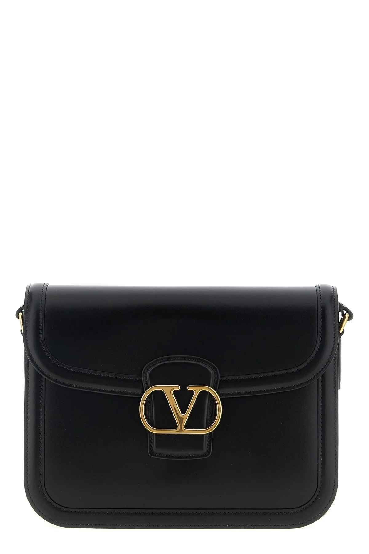 cod. Y2B0R15UHF0NO '9TO5' smooth calf leather shoulder bag, magnetic flap closure with VLogo Signature in antiqued metal effect on the front, adjustable shoulder strap. It has an additional portion of shoulder strap that can be attached to the bag thanks to buckles. Color: Black Size & Fit: W 24.5 x H 18.5 x D 8 cm Composition: 100% calfskin leather (Bos Taurus) Made in: Italy