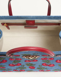 Valentino Garavani Antibes medium shopping bag in denim with Cherryfic embroidery, detailed with side buckles and leather patches with VLogo Signature metal feature. The bag can be comfortably worn on the shoulder/crossbody or by hand thanks to the handles and shoulder strap. - Gold-finish hardware - Protective feet - Canvas lining. Interior: flat zipper pocket - Double leather handles - Adjustable and removable leather shoulder strap - Adjustable buckles on the sides to change bag capacity - Handle drop length: 16 cm / 6.3 in. - Shoulder strap drop length: 55 cm / 21.7 at the central hole - Dimensions: W35xH29xD18 cm / W13.7xH11.4xD1.9 in. - Made in Italy This product contains magnets. Please consider if this product will be worn within 15 cm from any implanted device. Any concerns please contact your healthcare professional. Product code: 7W2B0R19QLU_BFF