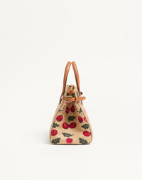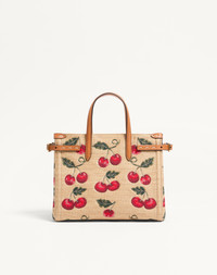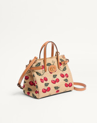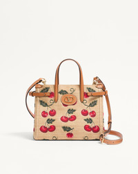 Valentino Garavani Antibes small shopping bag in synthetic jacquard raffia with a Cherryfic motif, detailed with side buckles and a leather patch with VLogo Signature metal feature. The bag can be handheld or comfortably worn on the shoulder/crossbody thanks to the handles and shoulder strap. - Gold-finish hardware - Protective feet - Canvas lining. Interior: slip pocket with zip - Double leather handles - Adjustable and removable leather shoulder strap - Adjustable buckles on the sides to change bag capacity - Handle drop length: 16 cm / 6.3 in. - Shoulder strap drop length: 55 cm / 21.7 at the central hole - Dimensions: W22xH19xD12 cm / W8.7xH7.5xD4.7 in. - Made in Italy This product contains magnets. Please consider if this product will be worn within 15 cm from any implanted device. Any concerns please contact your healthcare professional. Product code: 6W0B0R20MCZ_R9F
