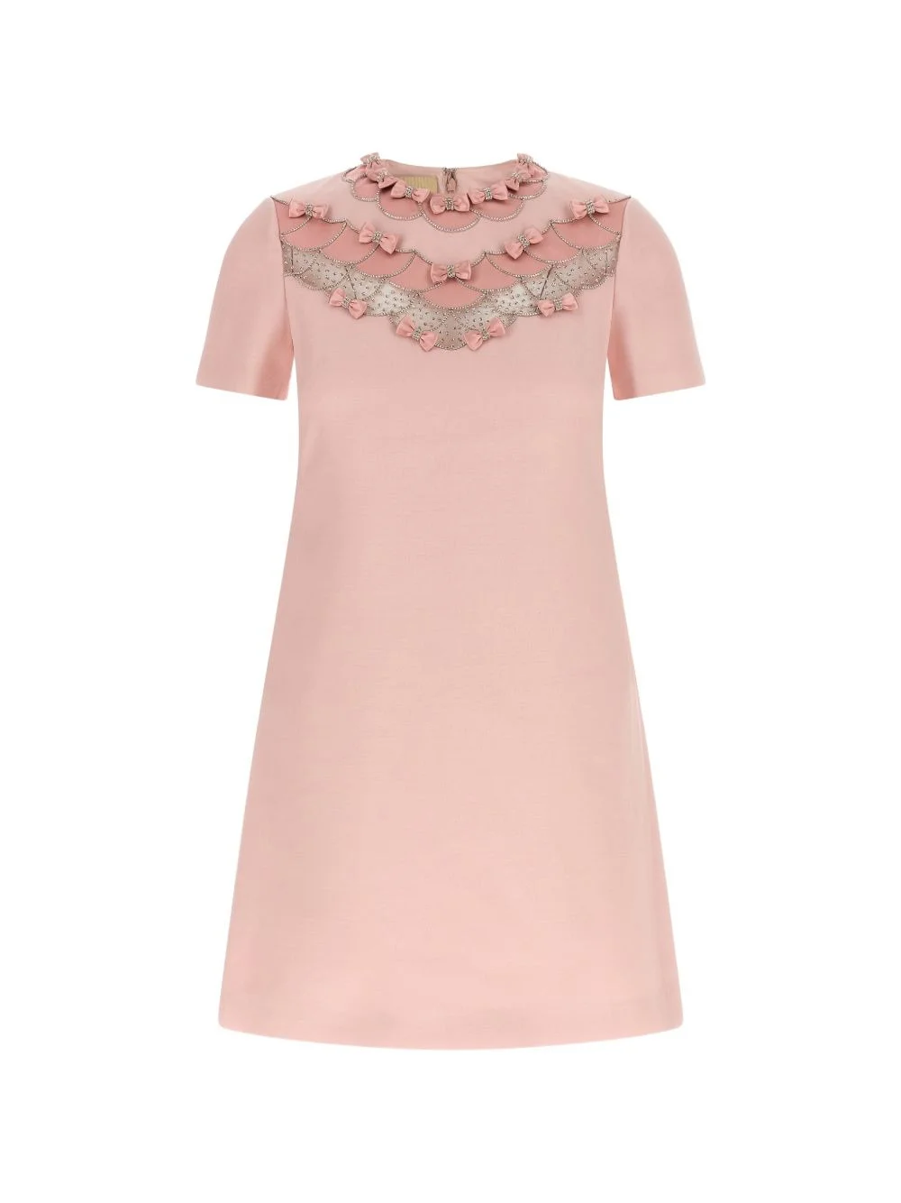 Crepe Couture dress Highlights - Pink - Jewel bows - Back zip fastening Made in Italy Composition Body: Virgin Wool 65%, Silk 35%