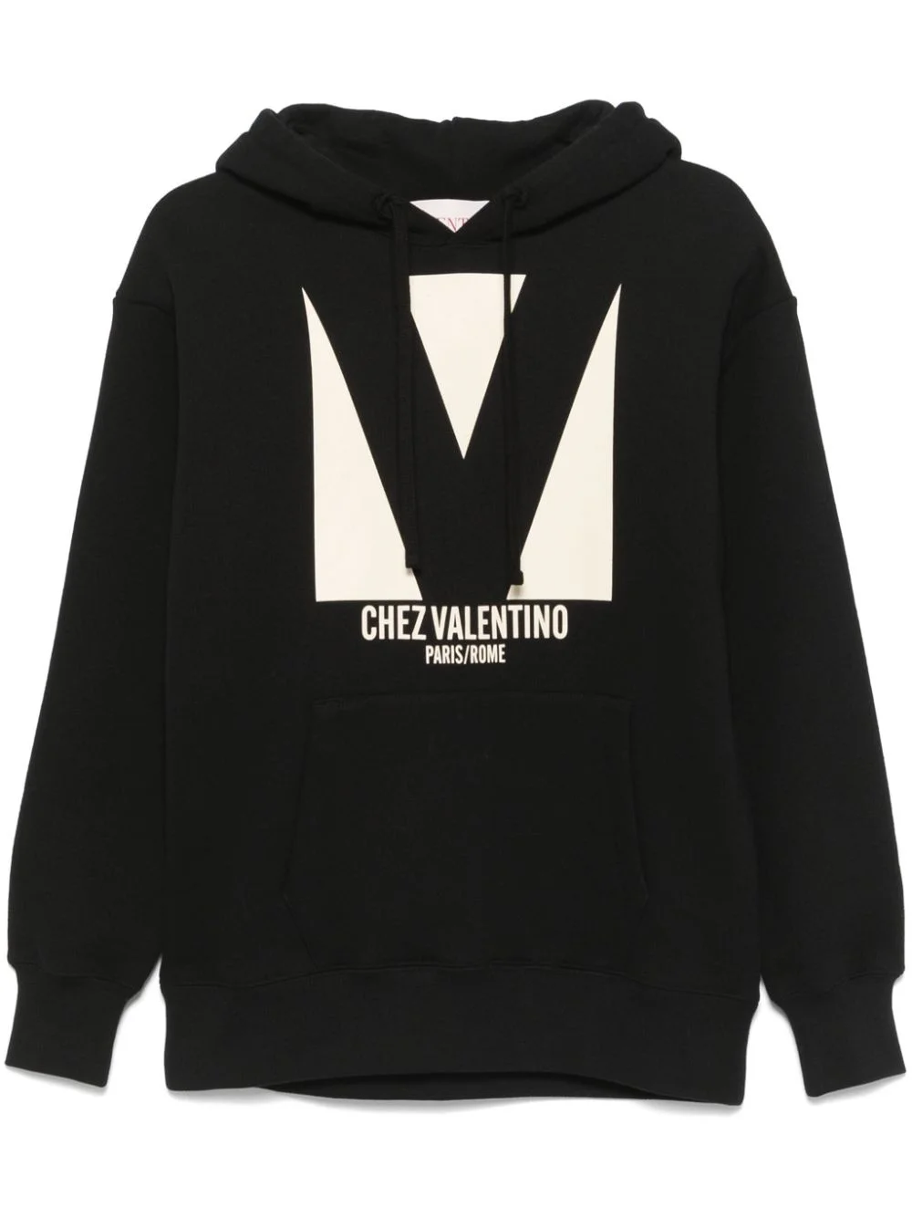 Chez hoodie Highlights - Valentino ready to wear - Black - Drawstring hood - Drop shoulder - Front pouch pocket Made in Italy Composition Cotton 100% SIZE & FIT Model measurements Height 5 ft 11 in(1.8 m) Bust/Chest 32.67 in(83 cm) Hips 35.82 in(91 cm) Waist 25.98 in(66 cm) FittingInformation Designed to be unstructured, offering a loose fit throughout Made from a midweight non-stretch fabric, this piece offers minimal elasticity when worn