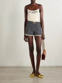 Valentino Garavani's swimsuit is printed with the brand's new 'Chez Valentino' logo - unveiled by Creative Director Alessandro Michele for his debut Resort '25 collection. Waffle-knitted for a tactile finish, it has a second-skin fit outlined in contrasting trims. The briefs offer medium coverage. Size & Fit - Fits true to size, take your normal size - Medium brief coverage - Model is 180cm/ 5’11”, bra size 32B and is wearing a size XSmall Model measurements: - Bust: 76cm/ 30" - Waist: 64cm/ 25" - Hip: 95cm/ 37.5" Details & Care - Ivory and black waffle-knit - Pulls on - 87% polyamide, 13% elastane; lining: 73% polyamide, 27% elastane - Hand wash - Lotion, sunscreen, oil and chlorine can cause discoloration of this item; this is not a manufacturing defect. Please follow care instructions to keep your swimwear in the best condition