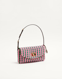 Valentino Garavani DeVain small shoulder bag in crochet fabric with metallic VLogo Signature detail. The bag can be carried by hand or over the shoulder. - Gold-finish hardware - Details and adjustable handle in grainy calfskin - Magnetic closure with gold-finish VLogo - Canvas lining - Interior: single compartment, slip pocket - Handle drop length: 14 cm / 5.5 in. at the center hole - This model has an additional leather section that can be attached to the bag with buckles - Handle drop length with additional section: 19 cm / 7.5 in. at the center hole - Removable leather tag with Valentino Garavani stamp - Dimensions: W23.5 x H12 x D3 in. / W9.3 x H4.7 x D1.2 in. - Made in Italy This product contains magnets. Please consider if this product will be worn within 15 cm from any implanted device. Any concerns please contact your healthcare professional. Product code: 8W0B0T31GUZ_4GJ