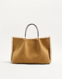 VALENTINO GARAVANI MEDIUM SHOPPING BAG IN EMBROIDERED SUEDE WITH SHEEPSKIN LINING.