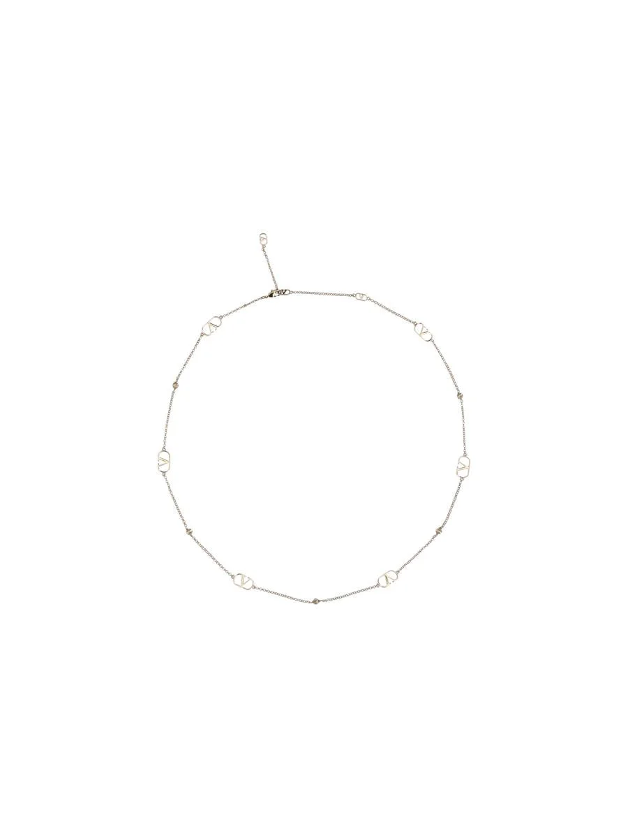 THE VALENTINO GARAVANI VLOGO NECKLACE IS A FINE EXAMPLE OF CONTEMPORARY ELEGANCE AND ARTISANAL SAVOIR-FAIRE. CRAFTED IN METAL WITH A PALLADIUM-COLORED FINISH, THIS CREATION STANDS OUT FOR ITS SOPHISTICATED LUMINOSITY AND THE ICONIC VLOGO LOGO, A RECOGNIZABLE SYMBOL OF THE MAISON. THE CHAIN, EMBELLISHED WITH SPHERICAL DETAILS DECORATED WITH CRYSTALS, ADDS A TOUCH OF LIGHT AND MOVEMENT TO THE DESIGN, ENHANCING FEMININITY WITH DISCREET OPULENCE. PERFECT FOR COMPLETING BOTH DAY AND EVENING LOOKS, THIS NECKLACE EMBODIES THE DISTINCTIVE VALENTINO GARAVANI AESTHETIC, COMBINING TRADITION AND MODERNITY IN A TIMELESS PIECE OF JEWELRY. UNI Gender: Women Material: METAL METALLIC METALLISED Color: SILVER Made in: Italy Product ID: 7W2J0X78MET_L01 *Import tax/duty will be calculated at checkout (If applicable)