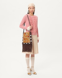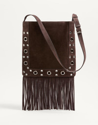 Valentino Garavani Nellcote embroidered shoulder bag with floral pattern and fringes. Suede trim decorated with ball studs and rivets. The bag can be comfortably worn on the shoulder/crossbody thanks to the adjustable suede shoulder strap. - Palladium-finish hardware - Small metallic detail with VLogo Signature - Shoulder strap drop length: 45 cm / 17.7 in. at the center hole - Dimensions: W30xH31xD3 cm / W11.8xH12.2xD1.2 in. - Made in Italy Product code: 6W2B0R33GRT_RCB