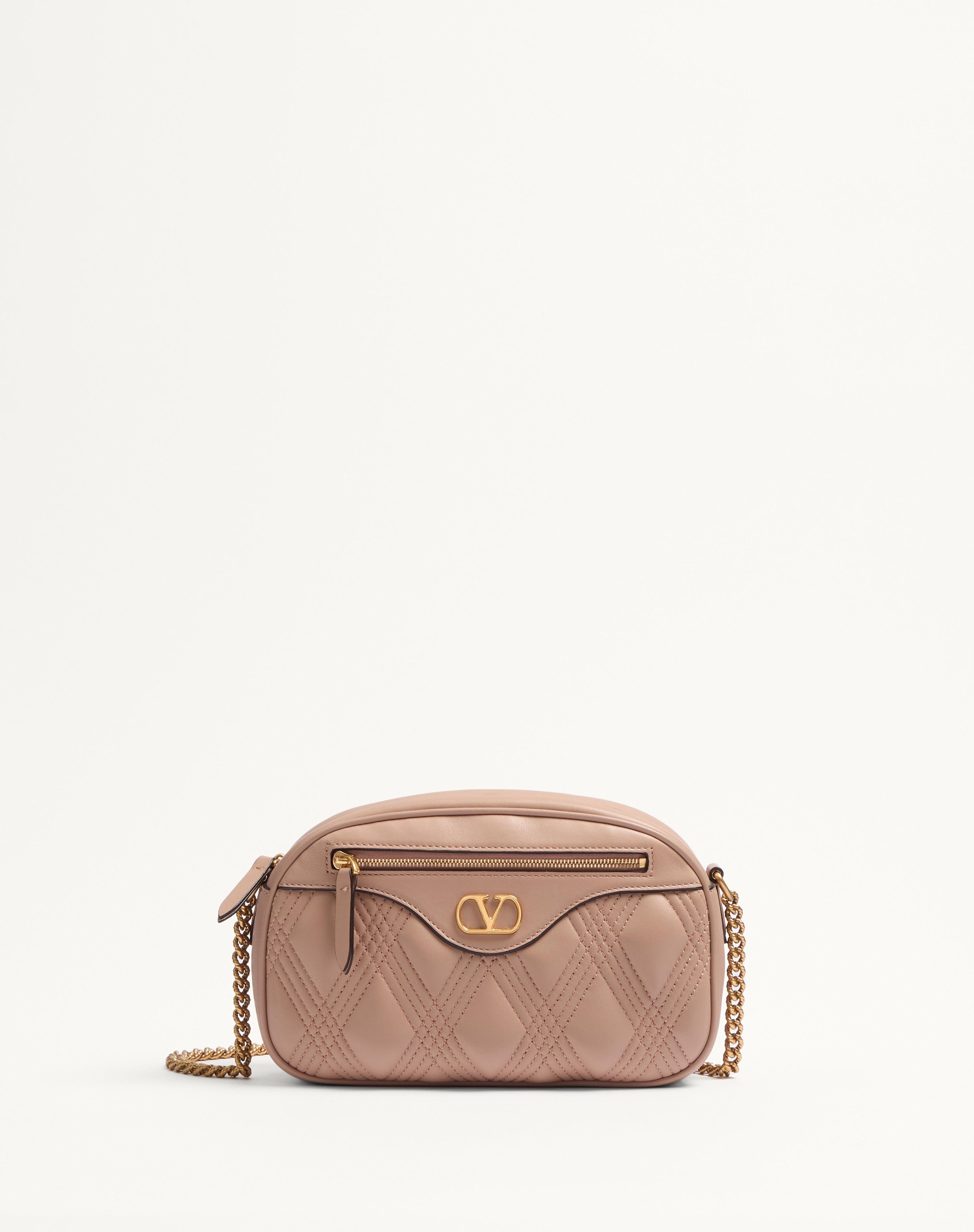 Valentino Garavani Quiltie 67 shoulder bag with chain in nappa. Quilted construction with diamond pattern outlined by tone-on-tone stitching. The bag can be worn on the shoulder/crossbody thanks to the chain. - Hardware in antique gold finish - VLogo Signature metal element in antique brass finish - Zipper closure - Exterior: slip pocket with zipper - Nappa lining. Interior: three card slots - Chain drop length: 52 cm / 20.5 in. - Dimensions: W24xH16xD6.5 cm / W9.4xH6.3xD2.6 in. - Made in Italy Product code: 6W2B0R03IFE_GF9