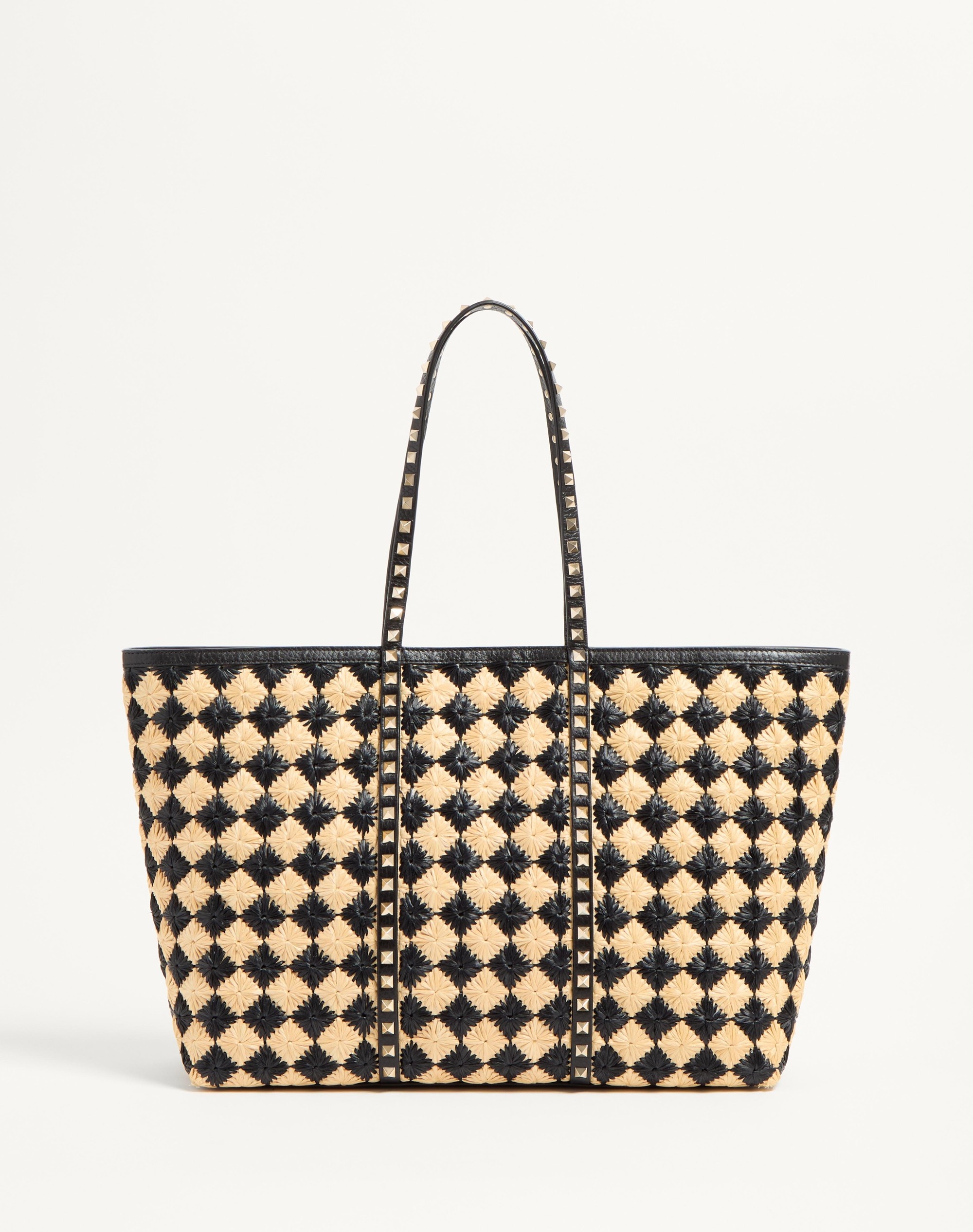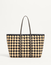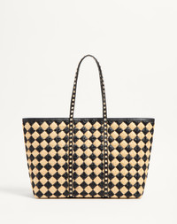 Valentino Garavani Rockstud shopping bag with synthetic raffia check embroidery. The bag can be comfortably worn over the shoulder. - Platinum-finish studs and hardware - Magnetic closure - Protective feet - Canvas lining. Interior: removable leather pouch - Dimensions: W37xH27xD12 cm / W14.6xH10.6xD4.7 in. - Handle drop length: 20.5 cm / 8 in. - Made in Italy This product contains magnets. Please consider if this product will be worn within 15 cm from any implanted device. Any concerns please contact your healthcare professional. Product code: 6W2B0R25FFS_EX9