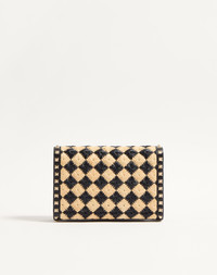 Valentino Garavani Rockstud small shoulder bag with synthetic raffia check pattern embroidery and leather details. - Platinum-finish studs and hardware - Hook closure - Adjustable shoulder strap - Canvas lining. Interior: open slip pocket - Shoulder strap drop length: 54 cm / 21.3 in. - Dimensions: W23xH15xD7 cm / W9.1xH5.9xD2.7 in. - Made in Italy Product code: 6W2B0R43FFS_EX9