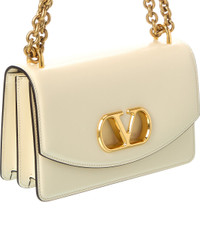 - About the brand: Signature elegance with a modern aesthetic. - Made in Italy - Vain Small Leather Shoulder Bag in white leather and gold-tone hardware with VLogo accent and chain straps - Interior design details: divided leather interior, zippered pocket - Measures 7.75in wide x 5in high x 3in deep - Top handles drop 13in - Shoulder strap drops 22in - Fold-over flap with magnetic closure - Please note: All measurements were taken by hand and are approximate; slight variations may occur. - Our products are 100% genuine. In some cases we purchase merchandise from trusted independent suppliers and not directly from the brand owner. In all cases we stand by the authenticity of every product sold on our site.
