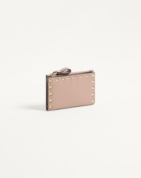 ROCKSTUD GRAINY CALFSKIN CARDHOLDER WITH ZIPPER