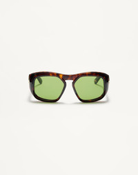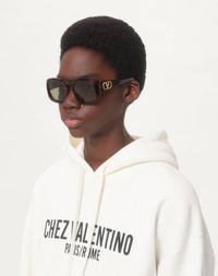 A retro-chic rectangular shape with a strong attitude and squared-front geometric piece. Sculpted of thick acetate with elegant milling throughout the front, as well as the interior, for added 3D richness, dimensionality and balance, this showpiece also features a high bridge for strength of character and the iconic VLogo mechanically screwed onto the temples for maximum visibility and impact. FEATURES - Lens Base: 4 Lens Category: 2 Lens Material: CR-39 - UV Transmittance: 0% Visibility Transmittance: 37.07% - Prescription friendly - Paper box: black matte paper box in recycled / FSC paper with black paper envelope inserts to include product accessories, recycled microfibre lens cloth and pouch. - Leather case: black case and strap in shiny recycled leather with black metal VLogo - Unisex Sunglass - Handcrafted in Italy MEASUREMENTS - Temples lenght: 14.5 cm / 5.7 in - Frame total width: 15 cm / 5.9 in - Lens Width: 5.5 cm / 2.1 in - Lens Height: 4.6 cm / 1.8 in - Bridge: 1.7 cm / 0.6 in Product code: Z530VLS179B_7UZ