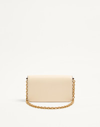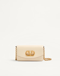 Valentino Garavani Vain clutch bag in shiny calfskin with metallic VLogo Signature detail. The bag can be carried on the shoulder/cross-body thanks to the leather shoulder strap and chain, both of which are removable. - Hardware in antique gold tone finish - Magnetic closure with VLogo in antique brass finish - Nappa lining. Interior: one slip pocket - Shoulder strap drop length: 55 cm / 21.2 in. ; - Chain drop length: 23 cm / 9 in. - Dimensions: W19H10xD5.4 in. / W7.5xH3.9xD2.2 in. - Made in Italy This product contains magnets. Please consider if this product will be worn within 15 cm from any implanted device. Any concerns please contact your healthcare professional. Product code: 6W0B0R71GCB_REN