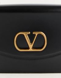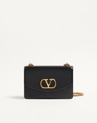 Valentino Garavani Vain shoulder bag in shiny calfskin with metallic VLogo Signature detail. The bag can be carried on the shoulder/crossbody thanks to the sliding chain. - Antique gold-finish hardware - Magnetic closure with antique brass-finish VLogo - Nappa lining. Interior: two compartments, zippered pocket and slip pocket Shoulder strap drop length: min. 27 cm - 52 cm max. / min. 10.6 cm to max. 20.4 in. - Dimensions: W24xH16xD8 cm / W9.4xH6.2xD0.7 in. - Made in Italy This product contains magnets. Please consider if this product will be worn within 15 cm from any implanted device. Any concerns please contact your healthcare professional. Product code: 6W2B0R16GCB_0NO