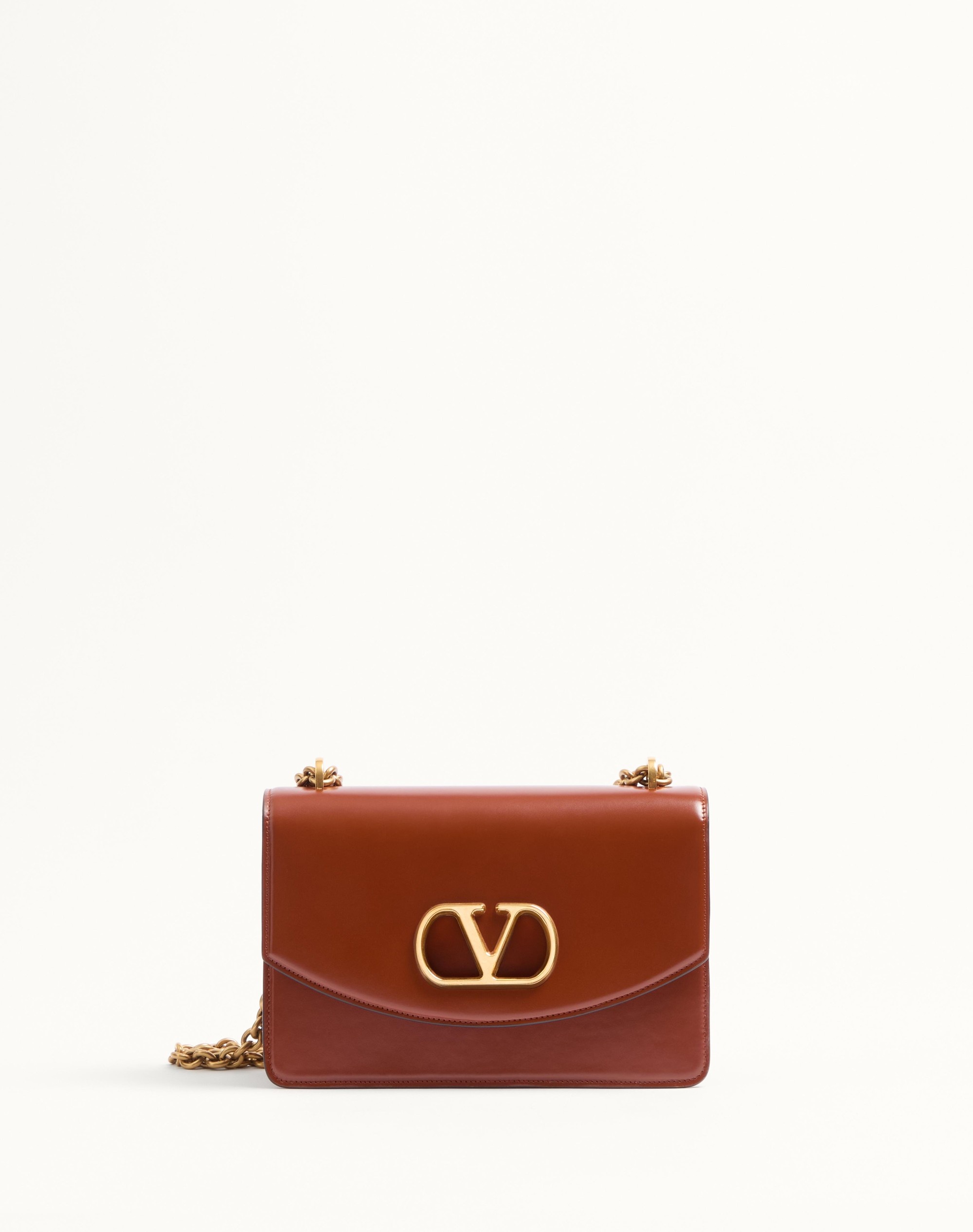 Valentino Garavani Vain shoulder bag in shiny calfskin with metallic VLogo Signature detail. The bag can be carried on the shoulder/crossbody thanks to the sliding chain. - Antique gold-finish hardware - Magnetic closure with antique brass-finish VLogo - Nappa lining. Interior: two compartments, zippered pocket and slip pocket Shoulder strap drop length: min. 27 cm - 52 cm max. / min. 10.6 cm to max. 20.4 in. - Dimensions: W24xH16xD8 cm / W9.4xH6.2xD0.7 in. - Made in Italy This product contains magnets. Please consider if this product will be worn within 15 cm from any implanted device. Any concerns please contact your healthcare professional. Product code: 6W2B0R16GCB_WUC
