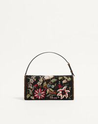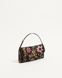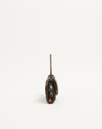 Valentino Garavani Vain small shoulder bag with floral embroidery on a black beaded base with metallic VLogo Signature detail. The bag can be carried by hand or worn over the shoulder. - Antique brass-finish hardware - Details and adjustable handle in grained calfskin - Magnetic closure with VLogo in antique brass finish - Satin lining. Interior: slip pocket - Handle strap drop length: 14 cm / 5.5 in. at the centre hole - Dimensions: W23.5xH12xD3 cm / W9.2xH4.7xD1.2 in. - Made in Italy This product contains magnets. Please consider if this product will be worn within 15 cm from any implanted device. Any concerns please contact your healthcare professional. Product code: 7W2B0S09LTT_DEY