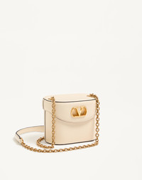 Valentino Garavani Vain vanity bag in shiny calfskin with metallic VLogo Signature detail. The bag can be carried by hand using the handle or worn crossbody using the chain, both of which are detachable. - Hardware in antique gold tone finish - Magnetic closure with VLogo in antique brass finish - Nappa lining. Interior: slip pocket - Chain drop length: 55 cm / 21.7 in.; handle drop length: 12 cm / 4.7 in. - Dimensions: W16xH13xD8.5 cm / W6.3xH5.1xD3.3 in. - Made in Italy This product contains magnets. Please consider if this product will be worn within 15 cm from any implanted device. Any concerns please contact your healthcare professional. Product code: 7W2B0R95GCB_REN
