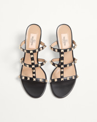 ROCKSTUD CALFSKIN LEATHER SLIDE SANDAL 60 MM