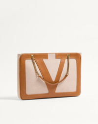 Valentino Garavani Viva Superstar medium canvas shopping bag. The bag features a contrasting maxi VLogo Signature and can be worn over the shoulder or crossbody thanks to the sliding chain. - Antique gold finish hardware - Zipper closure - Canvas lining - Exterior: slip pocket with zipper - Dimensions: W37xH26xD2 cm / W14.5xH10.2xD0.7 in. - Chain drop length: min. 28.5 cm to max. 51.5 cm / min. 11.2 to max. 20.3 in. - Made in Italy Product code: 6W0B0R13GLR_9QR