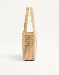Valentino Garavani Viva Superstar Crochet medium shopping bag in synthetic raffia featuring contrasting maxi VLogo Signature. The bag can be carried by hand or over the shoulder thanks to the double handles. - Handle drop length: 24 cm / 9.4 in. - Dimensions: W37xH24xD9 cm / W14.5xH9.4xD3.5 in. - Made in Italy Product code: 7W2B0S11QET_CEM