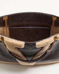 Valentino Garavani Viva Superstar medium shopping bag in shearling. The bag features a contrasting maxi VLogo Signature and can be worn over the shoulder or crossbody thanks to the sliding chain. - Antique-gold-finish hardware - Zipper closure - Dimensions: W37xH26xD2 cm / W14.5xH10.2xD0.7 in. - Chain drop length: min. 28.5 cm / 11.2 in. to max. 51.5 cm / 20.3 in. - Made in Italy Product code: 7W0B0S68HDL_CFE
