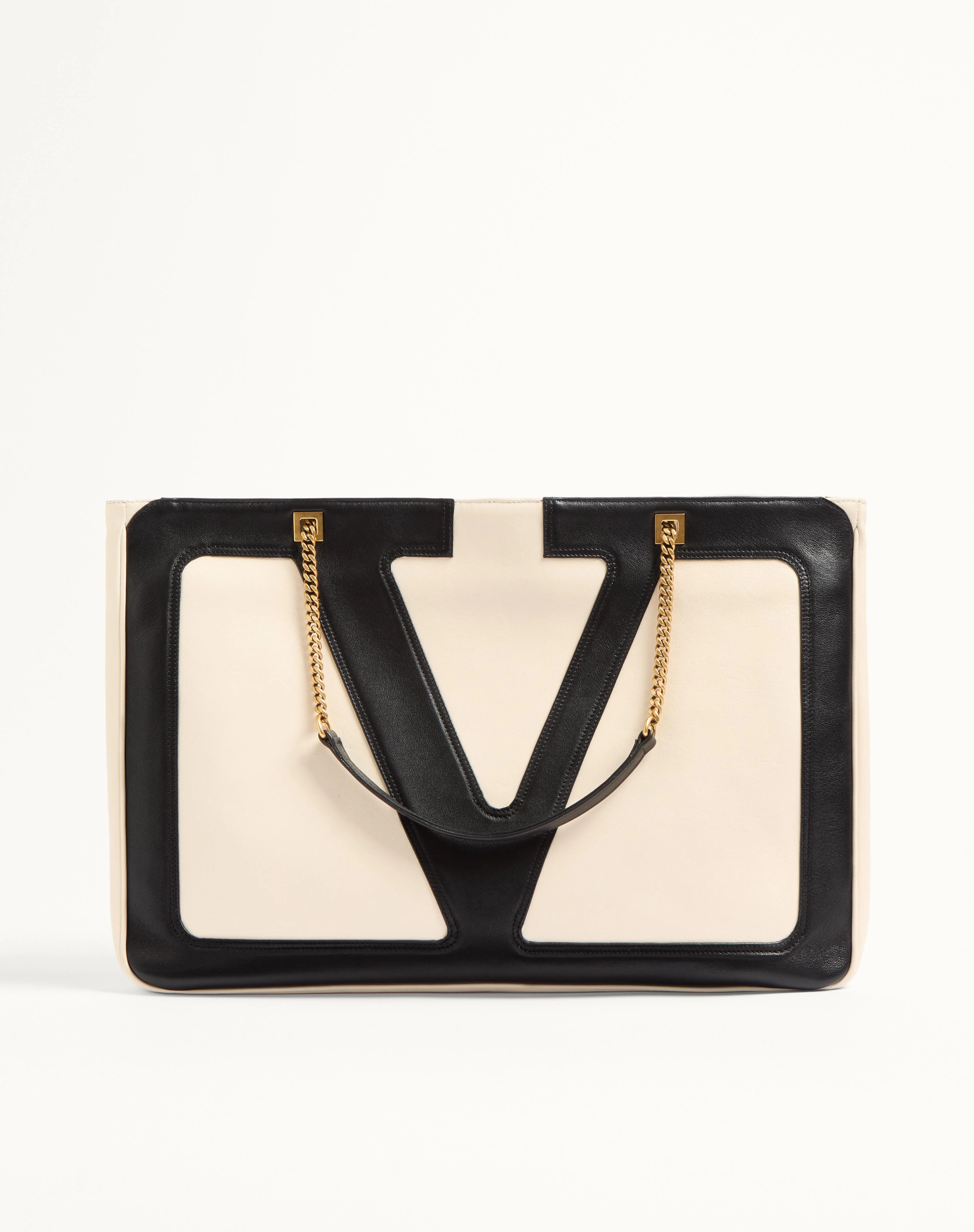 Valentino Garavani Viva Superstar large nappa leather shopping bag. The bag features a contrasting maxi VLogo Signature and can be worn over the shoulder thanks to the sliding chain. - Antique gold-finish hardware - Zipper closure - Nappa lining - Exterior: slip pocket with zipper - Dimensions: W45xH35xD3 cm / W17.7xH13.7xD1.2 in. - Chain drop length: min.28 cm to max. 50 cm / min. 11 in. to max. 19.7 in. - Made in Italy Product code: 6W2B0R12PTJ_R4V