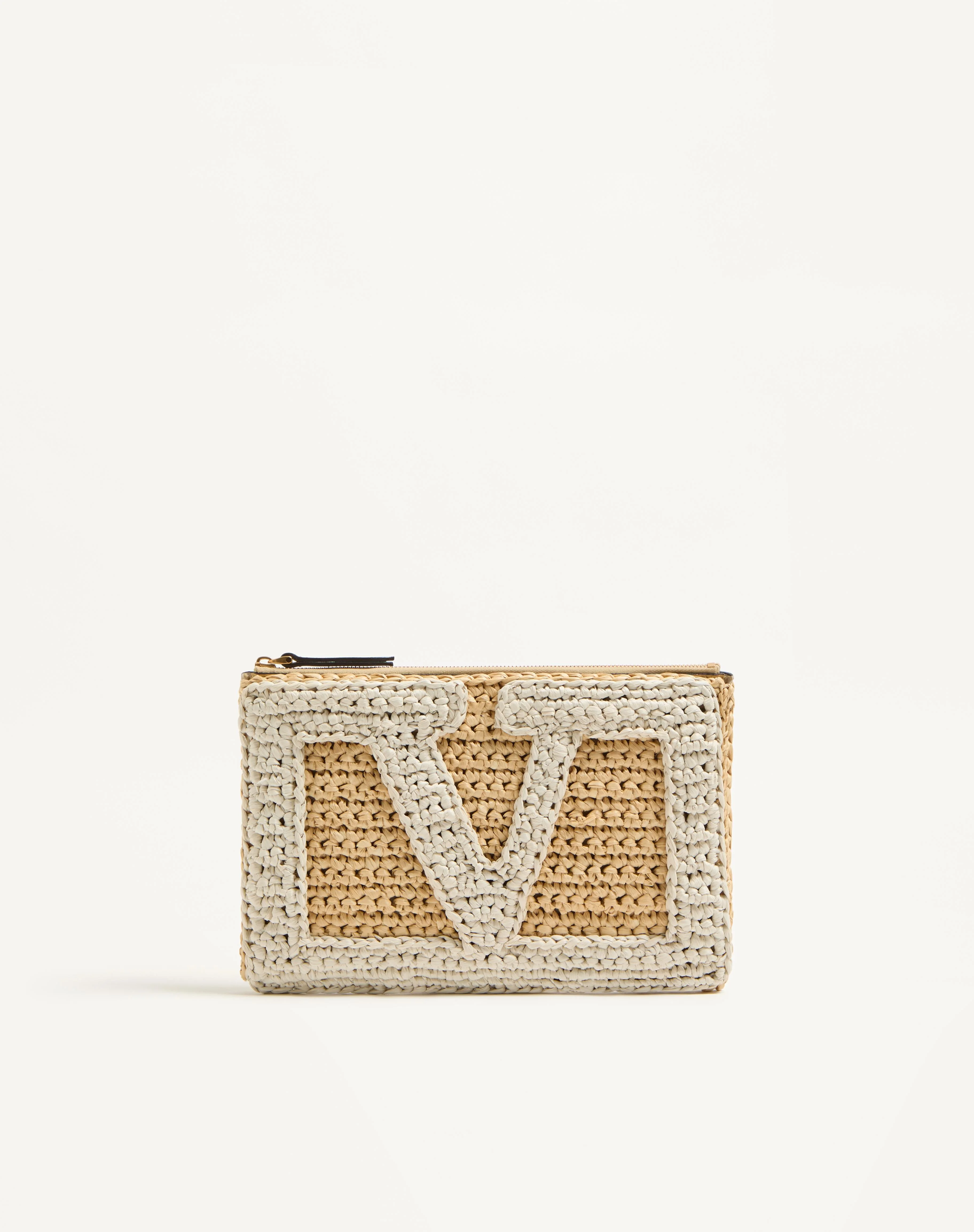 Valentino Garavani Viva Superstar Crochet pouch in synthetic raffia with contrasting maxi VLogo Signature. - Zip closure - Metal parts with antique gold finish - Canvas lining. Interior: three card slots - Dimensions: W23xH16 cm / W9.1xH6.3 in. - Made in Italy Product code: 7W2P0AR2NQA_CEM