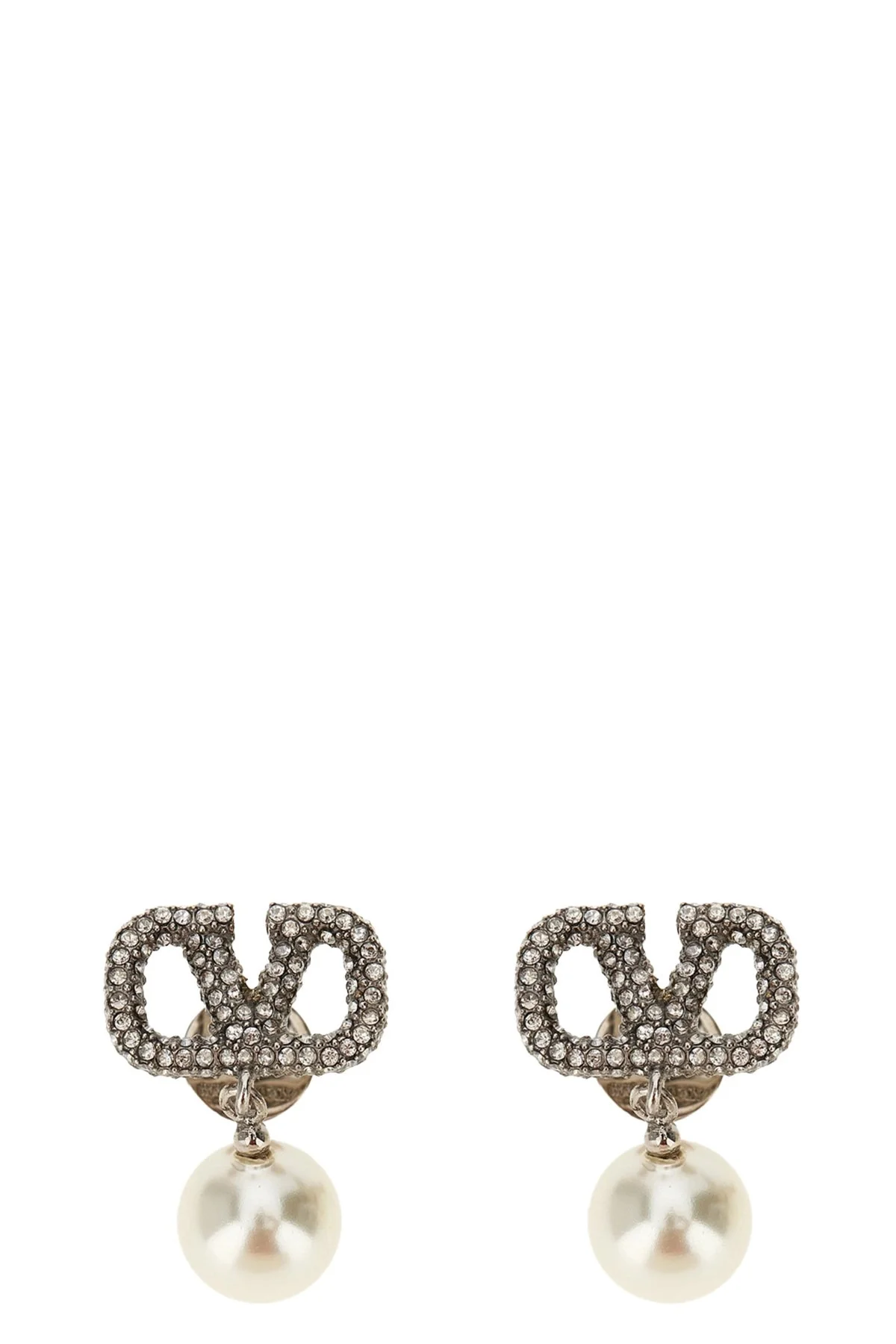 cod. W2J0E36QVSK0W Vlogo Signature metal and crystal earrings with pearl pendant. ITEM CANNOT BE RETURNED Color: Silver Composition: 100% steel Made in: Italy