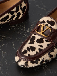 VLogo Signature 20 leather-trimmed leopard-print calf hair loafers Leopard print
