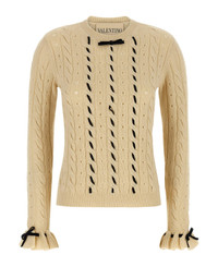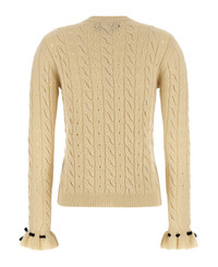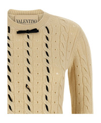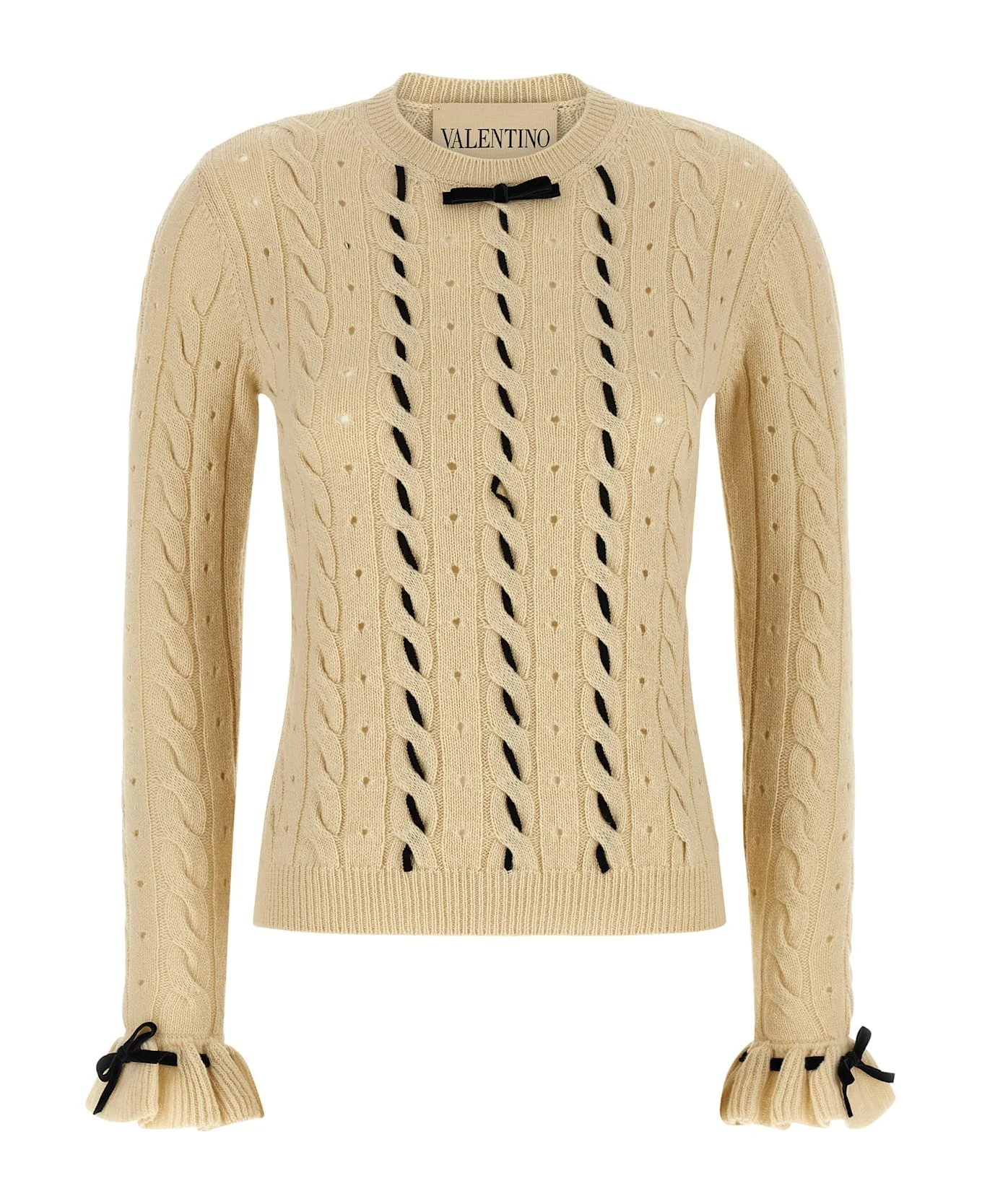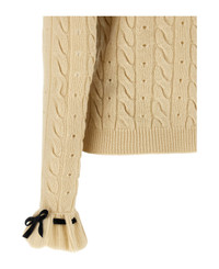 Braided wool sweater with velvet bow crewneck, grosgrain ribbon details, long sleeves with bow on the cuffs. Composition: 100% virgin wool Made in: Italy Color: White Size and fit: - True to size fit Model number: B3KC66Z9K9ET5