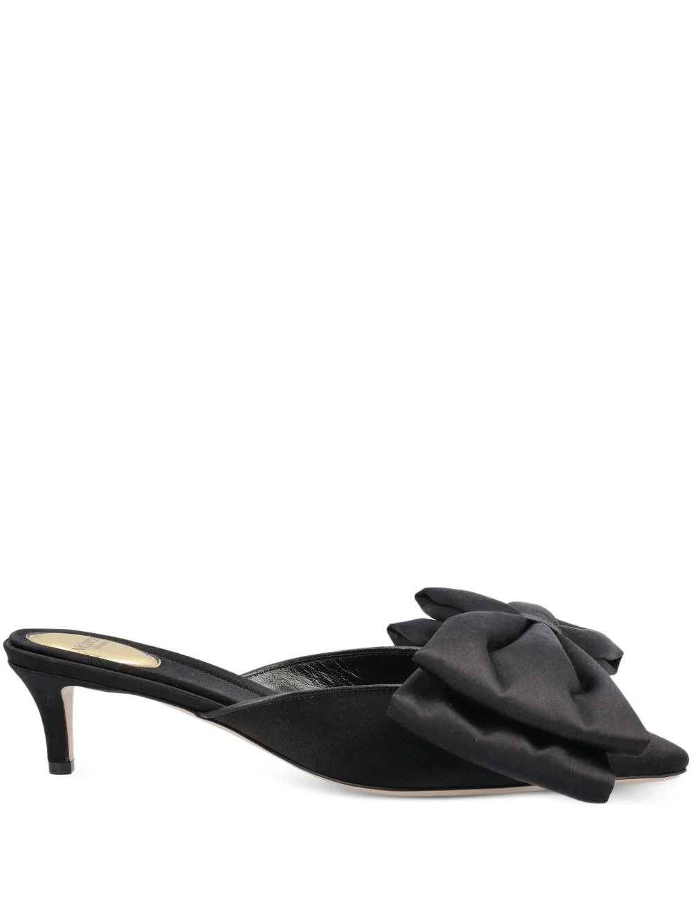 bow mules Highlights - Valentino mules - Black - Bow detail - Slip-on style - Kitten heel - Pointed toe - Logo detail - The full look includes valentino garavani accessories. Made in Italy Composition Outer: Satin 100% Lining: Calf Leather 100%, Fabric 100% Sole: Calf Leather 100% SIZE & FIT Measurement HEEL 1.77 in(4.5 cm)