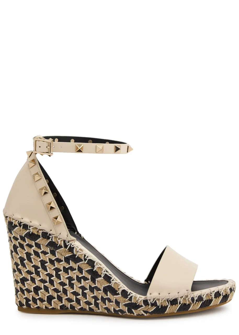 Valentino Rockstud 100 Leather Wedge Espadrilles