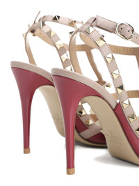 100mm Rockstud Caged pumps Highlights - Red - Studded detailing - T-strap - Pointed toe - Stiletto heel - Buckle fastening Made in Italy Composition Outer: Patent Leather 100%, Calf Leather 100% Lining: Calf Leather 100% Sole: Calf Leather 100% SIZE & FIT Measurement HEEL 3.93 in(10 cm)