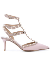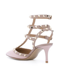 Rockstud pumps Water rose and poudre leather Valentino Garavani Rockstud pumps from Valentino featuring a pointed toe, a brand embossed insole, a mid high stiletto heel, a leather sole and a signature caged Rockstud ankle strap with buckle fastening. Made in Italy Composition Outer: Calf Leather 100%, Metal 100% Sole: Calf Leather 100% Lining: Leather 100% SIZE & FIT Measurement HEEL 2.55 in(6.5 cm) CIRCUMFERENCE 8.66 in(22 cm)