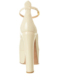 - Based on feedback from Members, this brand typically runs small. We suggest sizing up a half size for most styles. - About the brand: Signature elegance with a modern aesthetic. - Please note: Size selections are European. For US conversions, please reference size chart. - Made in Italy - Tan-Go 155 Patent Platform Pump in white patent leather and gold-tone hardware with VLogo accent - Adjustable ankle strap with buckle closure - Lightly padded leather insole - Smooth leather sole - 6in heel - 2in platform - Please note: All measurements are approximate and were taken from a size 37; slight variations may occur. - Our products are 100% genuine. In some cases we purchase merchandise from trusted independent suppliers and not directly from the brand owner. In all cases we stand by the authenticity of every product sold on our site.