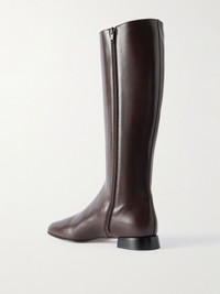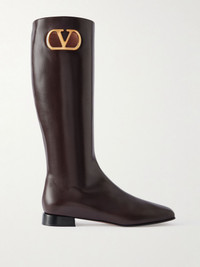 Valentino Garavani's 'VLogo' knee boots have the tall, sleek shape of riding styles. They're made from leather and embellished with antiqued gold-tone plaques at the cuffs. Size & Fit - Fits true to size, take your normal size - Only available in full sizes, go down to the nearest whole size if you take a half size - Italian sizing Details & Care - Heel measures approximately 20mm/ 1 inch - Chocolate leather (Goat) - Zip fastening along side - Designer color: Oak Brown