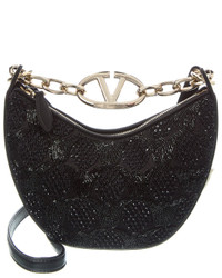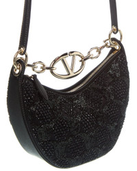 - About the brand: Signature elegance with a modern aesthetic. - Made in Italy - VLogo Mini Satin Hobo Bag in black satin and gold-tone hardware with VLogo chain accent and sequin and bead embellishments - Interior design details: satin lining, wall pocket - Measures 9in wide x 7in high x 3.5in deep - Adjustable and removable shoulder strap drops 24in - Zipper closure - Please note: All measurements were taken by hand and are approximate; slight variations may occur. - Our products are 100% genuine. In some cases we purchase merchandise from trusted independent suppliers and not directly from the brand owner. In all cases we stand by the authenticity of every product sold on our site.