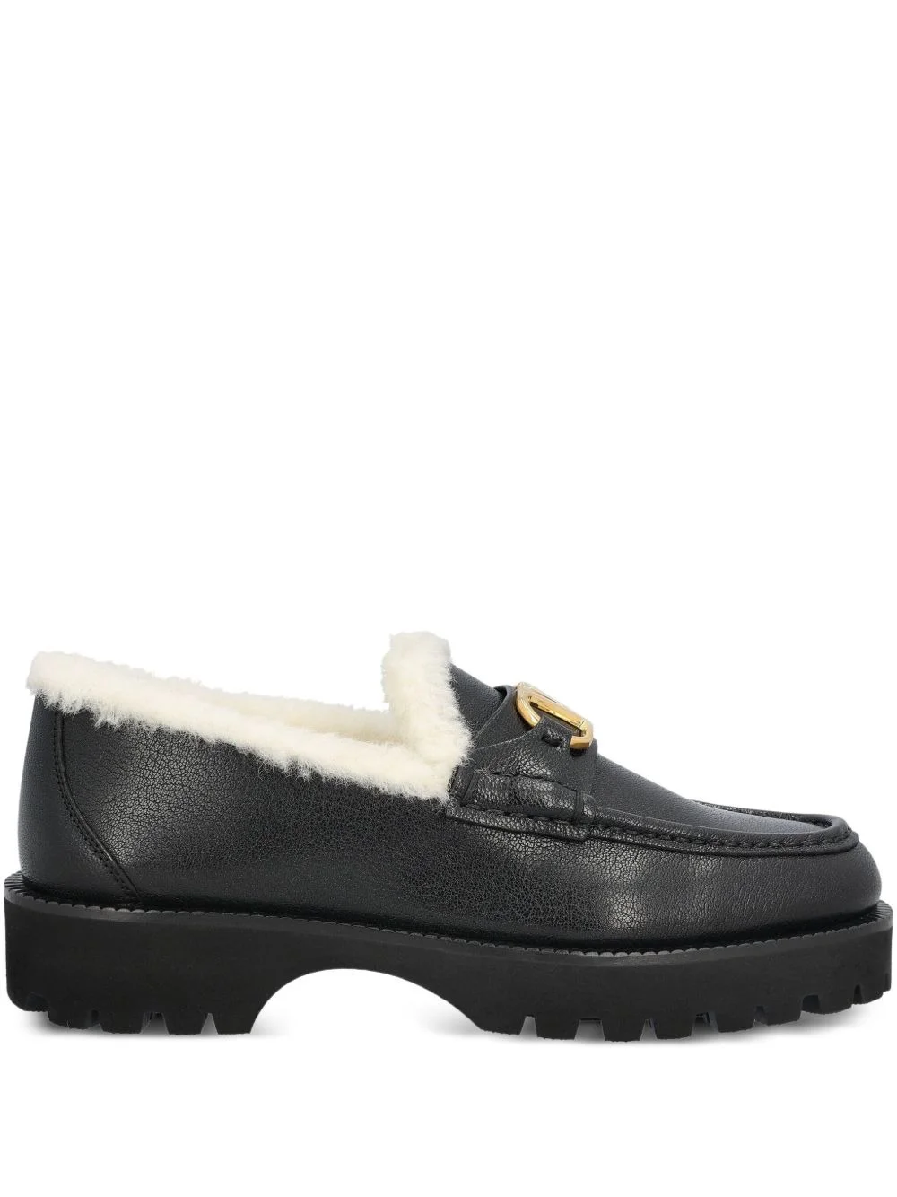 logo leather loafers Highlights - Black - Goat skin - Fur trim - Gold-tone logo detail - Platform sole - Lug sole Made in Italy Composition Outer: Goat Skin 100% Lining: Lamb Shearling 100% Sole: Rubber 100%