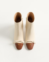 Valentino Garavani Valet Du Roi ankle boot in two-tone kidskin - VLogo Signature detail with antique-effect brass finish - Bow detail with leather tassels - Inner side zipper - Heel height: 60 mm / 2.4 in. - Boot shaft height: 13 cm / 5.1 in.; Italian size 37 - Made in Italy Product code: 7W2S0ML4DDT_AHA
