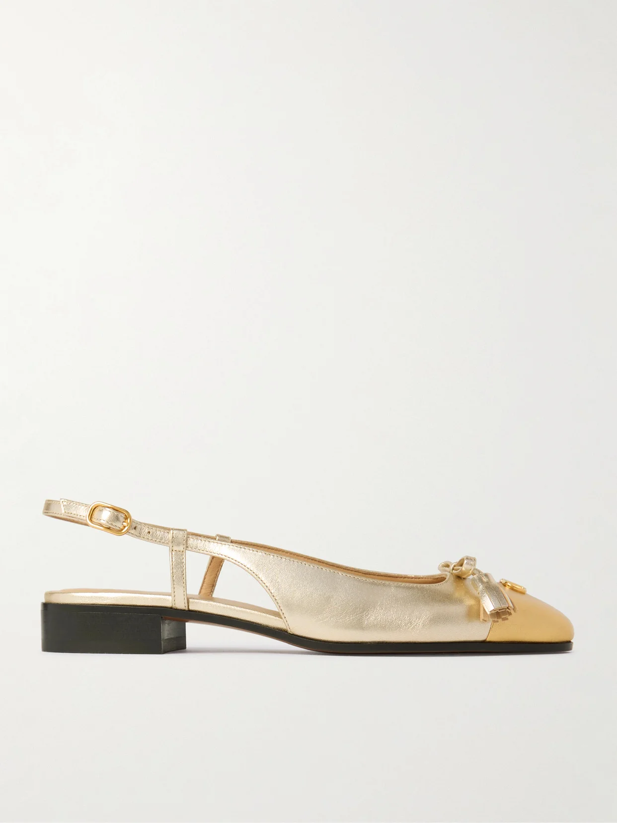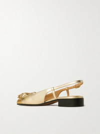Valentino Garavani's 'Valet Du Roi' slingback pumps add a touch of glamour to any outfit. They've been made in Italy from metallic leather with capped toes and detailed with dainty tasseled bows. The stacked heels offer a comfortable lift.