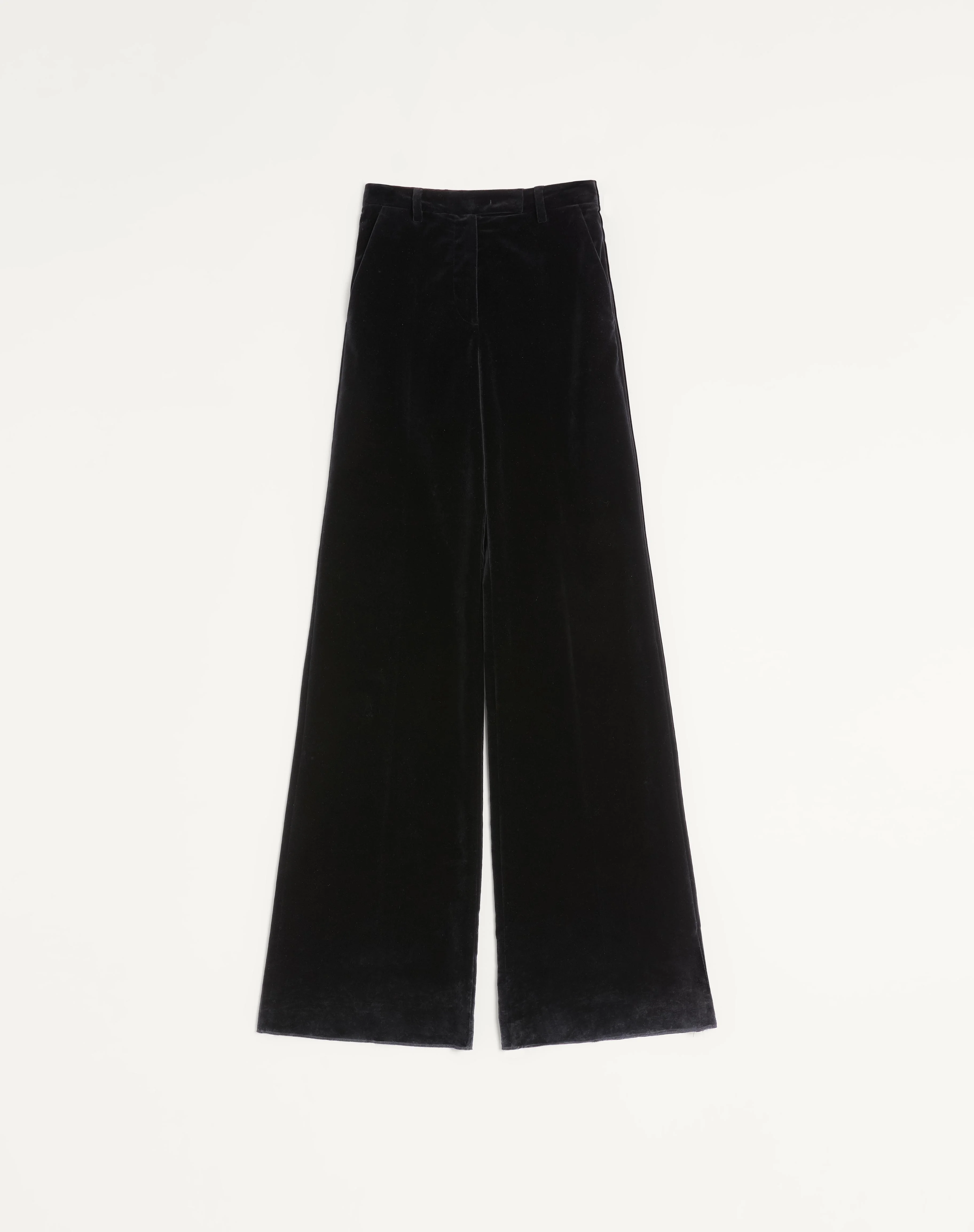 Velvet pants with frayed hem - Front button and zipper closure - Cotton Velvet (100% Cotton) - Half lining in cotton (100% Cotton) - Length: 125 cm / 49.2 in. from the waist in an Italian size 40 - Leg opening: 33 cm / 12.9 in. in an Italian size 40 - The model is 176 cm / 5'9" tall and wears an Italian size 40 - Made in Italy The look of the model is completed by Valentino Garavani Panthea Shoes. Product code: 7B0RB6S093D_0NO