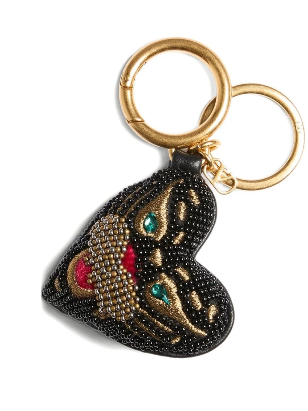 VG Coeur De Chat heart-shape bag charm Highlights - Black - Beaded embroidery - Glass crystals - Snap hook - Key ring Made in Italy Composition Nappa Leather 100%, glass 100%, Brass 100%