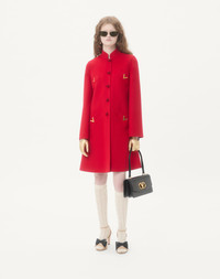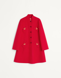 Compact Drap coat with V Gold and soutache buttons - Single-breasted with front closure - Compact Drap (90% Virgin Wool, 10% Cashmere) - Habotai-lined pockets (100% Silk) - Length: 90 cm / 35.4 in. from the shoulders in an Italian size 40 - The model is 176 cm / 5'9" tall and wears an Italian size 40 - Made in Italy The look of the model is completed by a Valentino Garavani Viva Superstar Bag and Valentino Garavani Hi Dolly Shoes. Product code: 7B3CA7T06JA_R9M