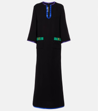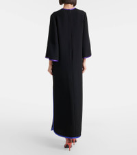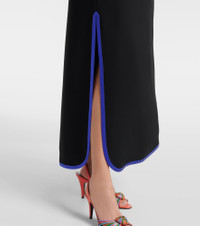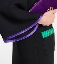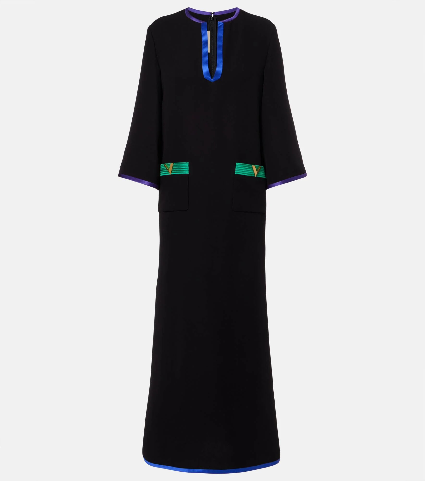 This midi dress is punctuated with colorful contrast trims and brand-iconic VGold hardware. Made from swathes of pure silk, Valentino's signature Cady Couture lends fluidity to each style. Product Details - Material: 100% silk - Care instructions: dry clean - Made in Italy - Color: black - Designer color name: Nero+Multicolor - Material II: 100% silk - Hardware color: gold - Pockets: snap-buttoned pockets - Side slits - Closure: invisible zipper - Item number: P01108247 Size & Fit - True to size - Designed for a loose fit - Non-stretchy fabric - The model seen in the picture is 178cm-5'10" and wearing a size IT 40