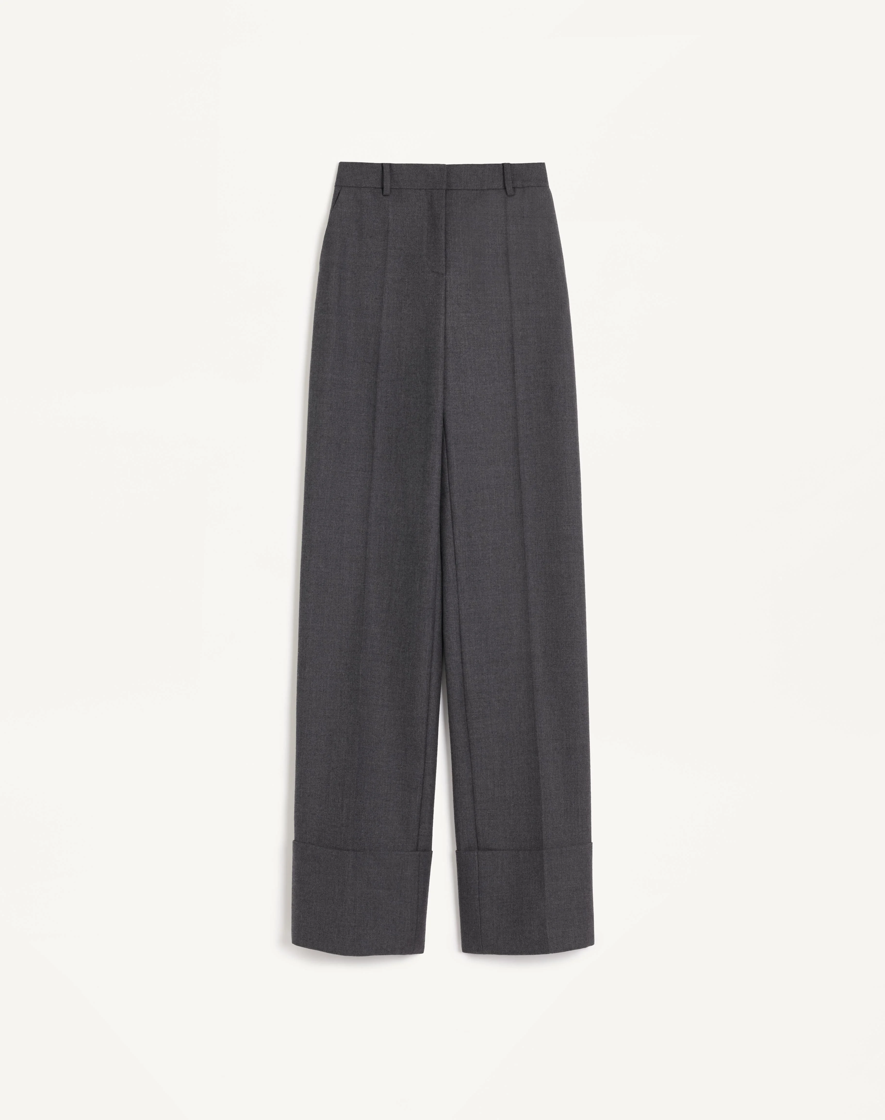 Straight-cut pants in Virgin Wool - Turn-ups at the ankle - Front zipper and hook-and-eye closure - Virgin Wool (100% Viscose) - Length: 117 cm / 46.1 in. from the waist in an Italian size 40 - Leg opening: 24 cm / 9.4 in. in an Italian size 40 - The model is 176 cm / 5'9" tall and wears an Italian size 40 - Made in Italy The look of the model is completed by a Valentino Garavani Vain Bag and Valentino Garavani Foliefoliage Shoes. Product code: 6B0RB6F08VB_153