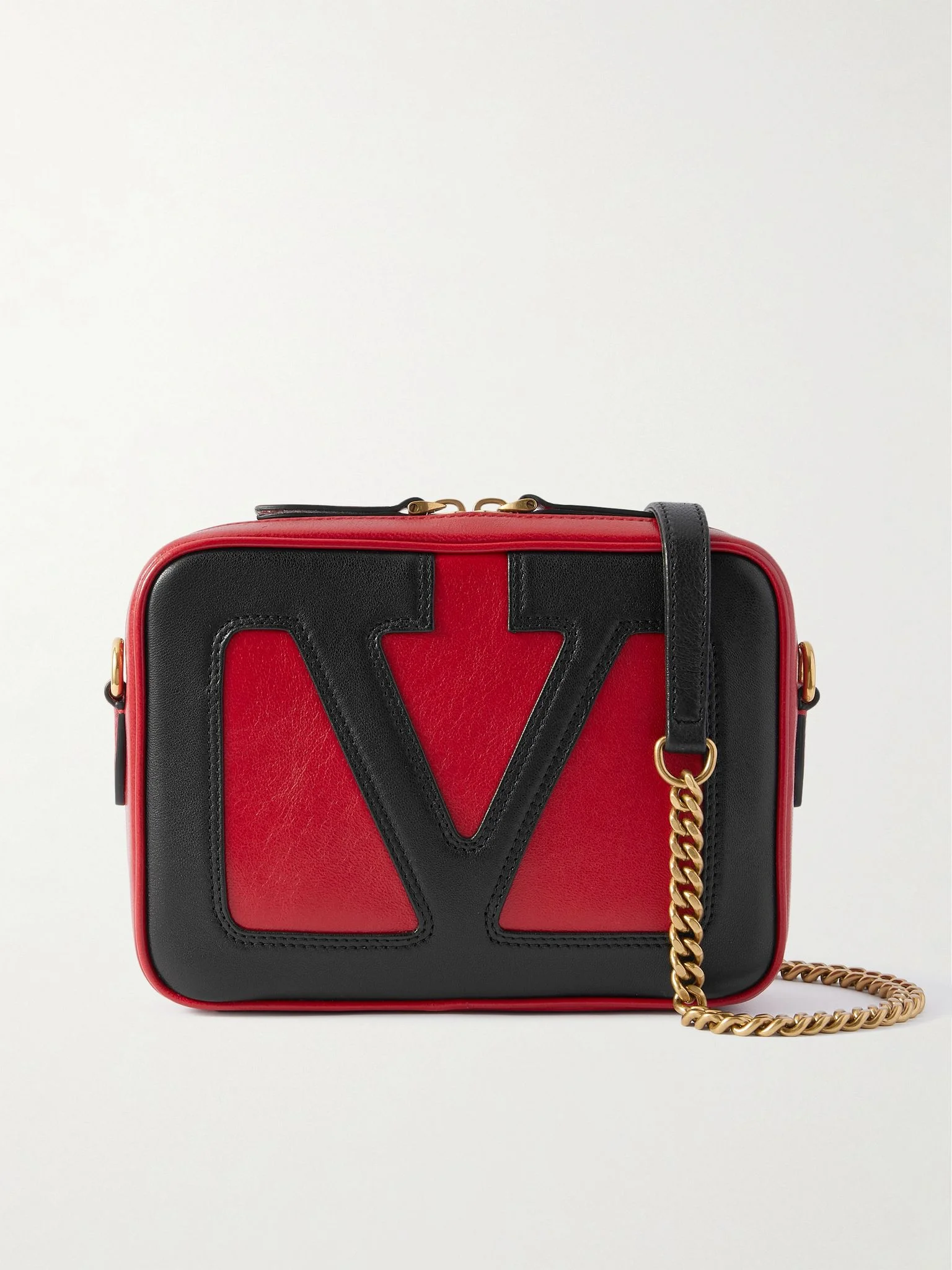 Valentino Garavani’s ‘Viva Superstar’ collection is defined by its bold, oversized 'VLogo' emblem prominently displayed across the front. This version has been made in Italy from leather in a structured shape and has interchangeable chain-trimmed and grosgrain cross-body straps, so you can easily switch up the look. The external zipped pocket keeps smaller items easily accessible, while the interior has enough space for your phone, cards and keys. Details & Care - Red and black leather - Detachable adjustable shoulder straps - External zipped pocket at back, internal card slots - Leather lining - Zip fastening along top - Comes with a dust bag