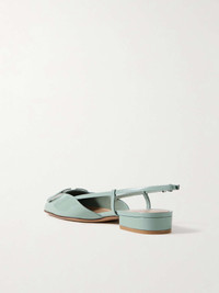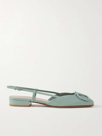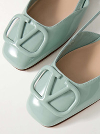 EDITORS'NOTES So much fashion history is attached to Valentino Garavani's unmistakable 'VLOGO'. Topped with the emblem, these flats are made from soft patent-leather and have a buckled slingback strap. Wear yours with cropped jeans, tailored pants or mini skirts. Large to size. See Size & Fit notes. SIZE & FIT - Fits large to size, take a full size smaller than normal - Italian sizing DETAILS & CARE - Heel measures approximately 30mm/ 1 inch - Gray-green patent-leather (Calf) - Buckle-fastening slingback strap - Designer color: Morning Dew
