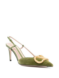 80mm V-logo embellishment pumps Highlights - Green - Vlogo signature - Suede - Crystal-embellishment - Slingback strap - Pointed toe - Stiletto heel Made in Italy Composition Lining: Calf Leather 100% Outer: Calf Leather 100%, Velvet 100% Sole: Calf Leather 100% SIZE & FIT Measurement HEEL 3.14 in(8 cm)